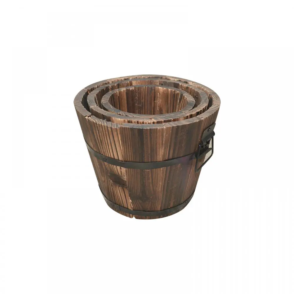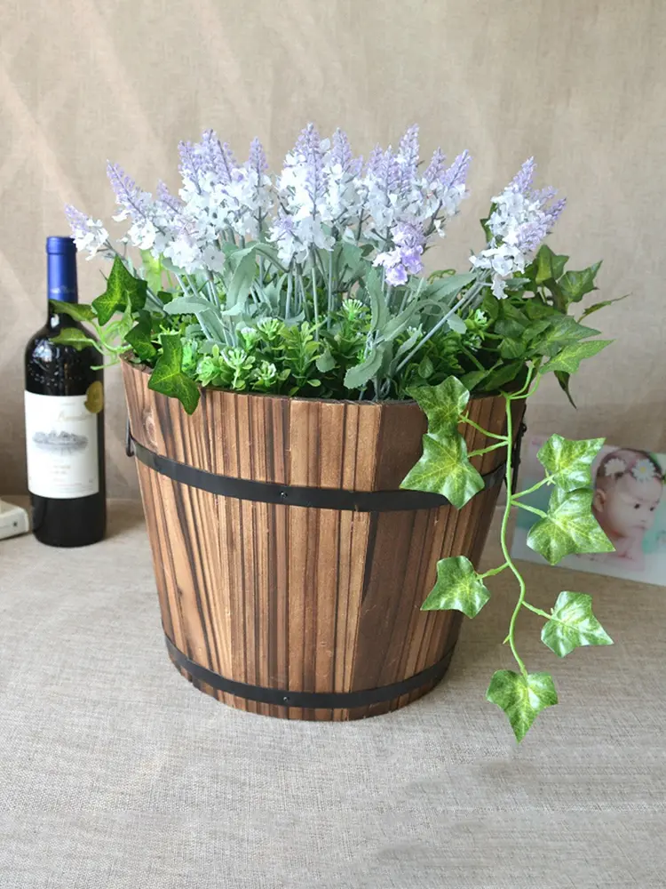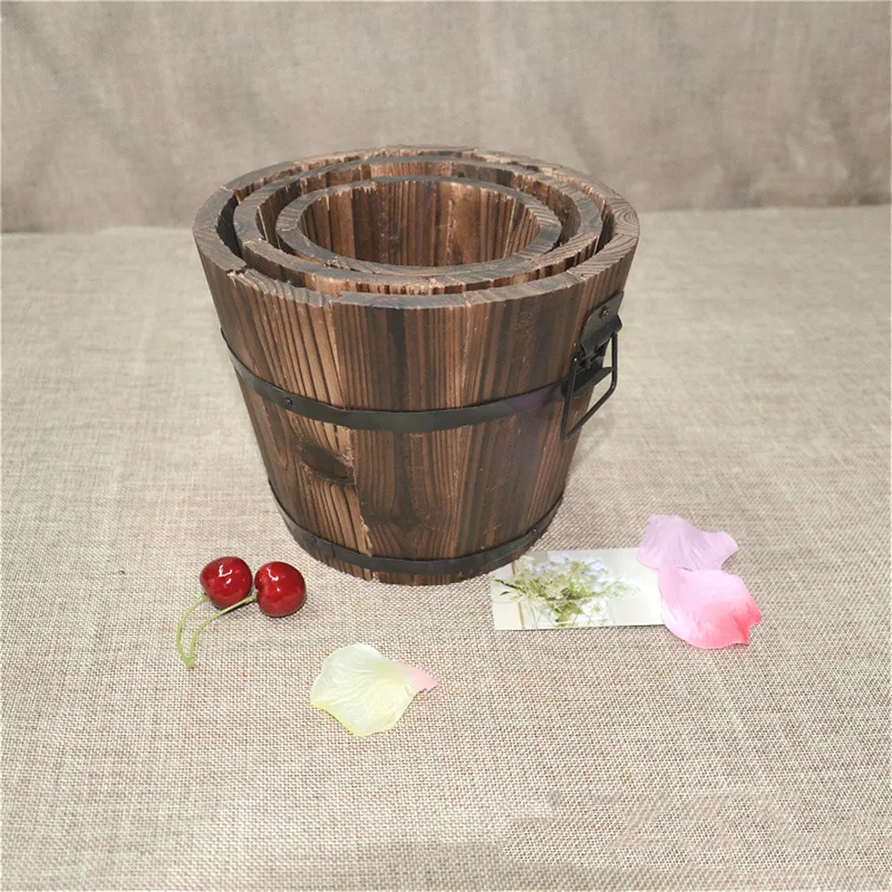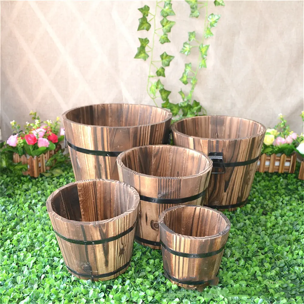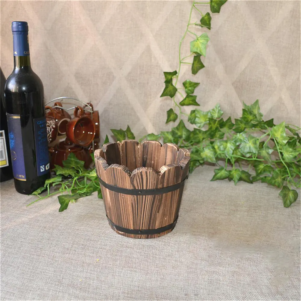 1/2PCS Retro Planting Flower Barrels Rustic Succulent Wavy Edge Planter Box Wood Barrels Flower Pot Plant Container Box Outdoor
