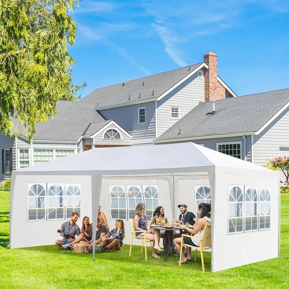 Complete your party with this spacious and versatile Outdoor Party Tent! It is definitely a must-have for a party in your backyard or for a commercial event outdoors. Our outdoor party tent offers shelter from the sun rays and light rain, so as to provide the perfect space for serving and drink. And the tent is a wonderful choice to add party atmosphere that will put all of your guests in the mood to celebrate. Removable sidewalls allow you to leave open sides as many as you want.