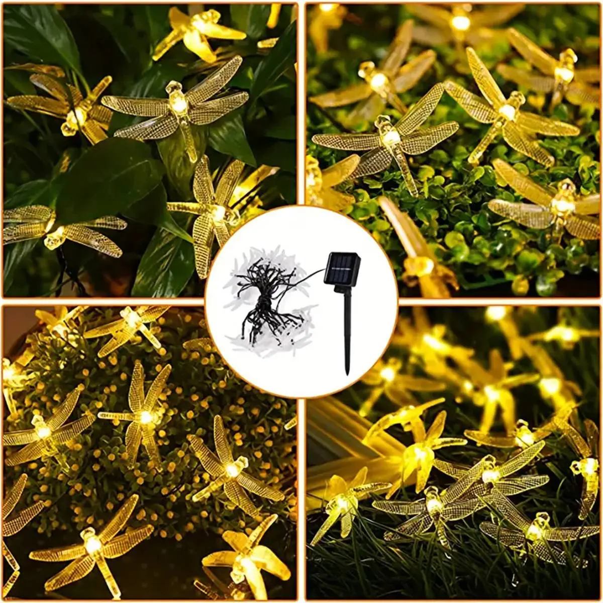 1pc 5M20LEDs Dragonfly Solar String Lights Outdoor Waterproof 8 Modes Dragonfly Fairy Lights For Home Patio Garden Wedding Decor