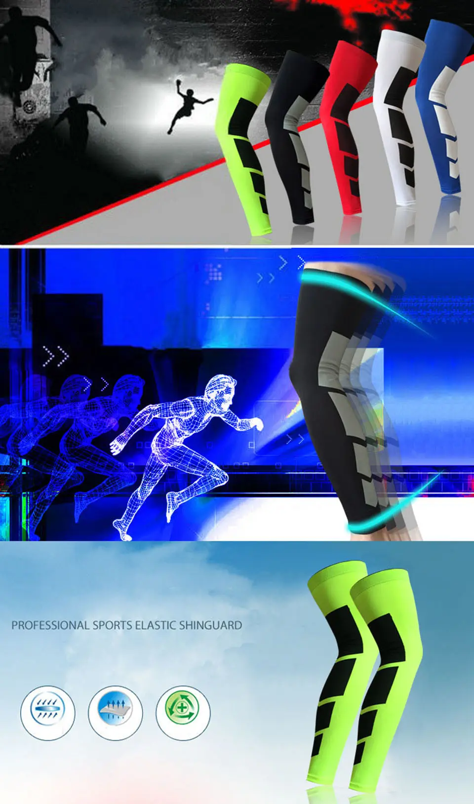 1PCS Super Elastic Basketball Leg Warmers Calf Thigh Compression Sleeves Knee Brace Soccer Volleyball Cycling (1PCS,not 1 Pair)