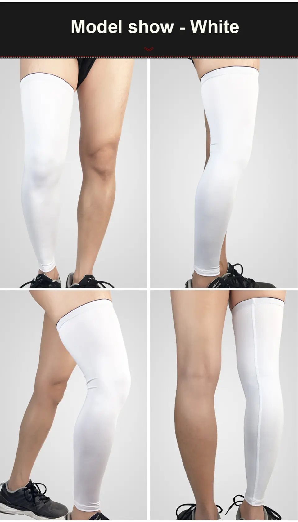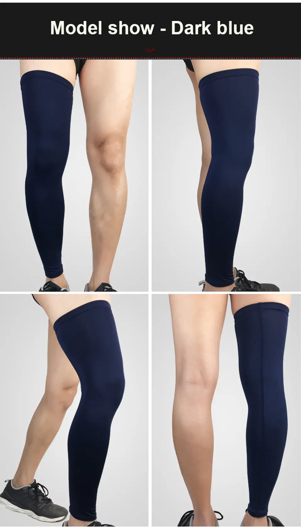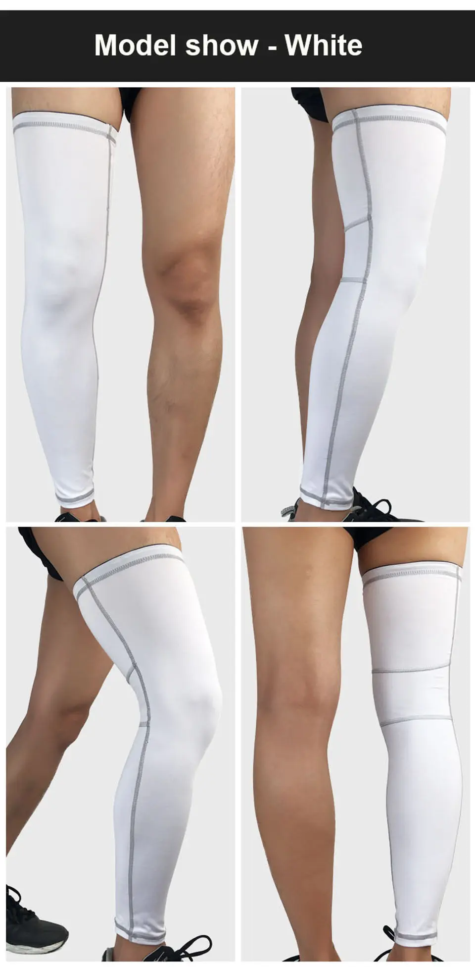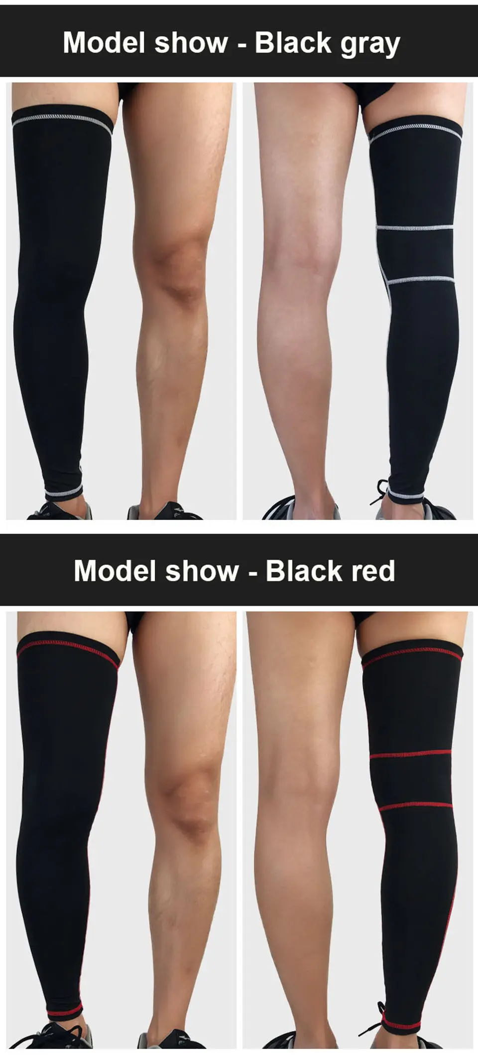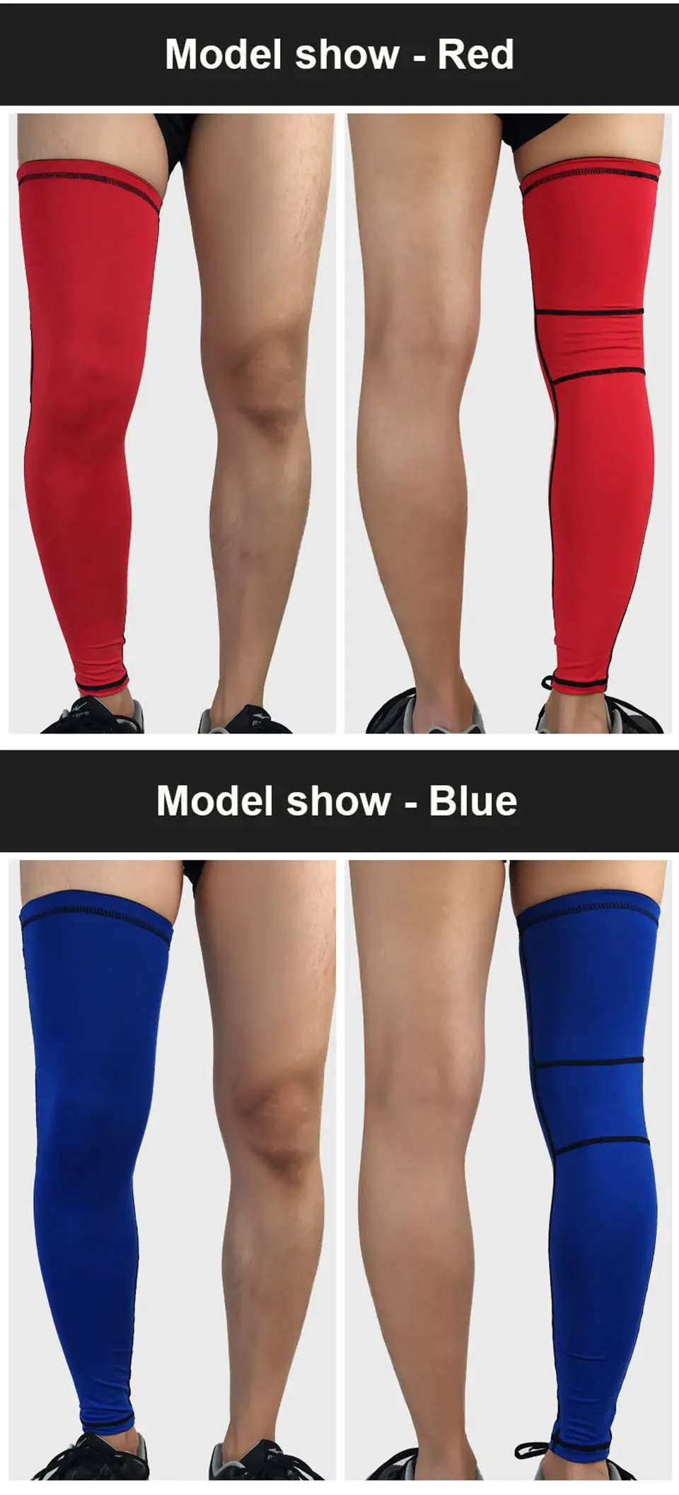 XL– length 53cm,down cuff circumference 22-32cm,top cuff circumference 38-48cm,suggest weight:75-85kg people