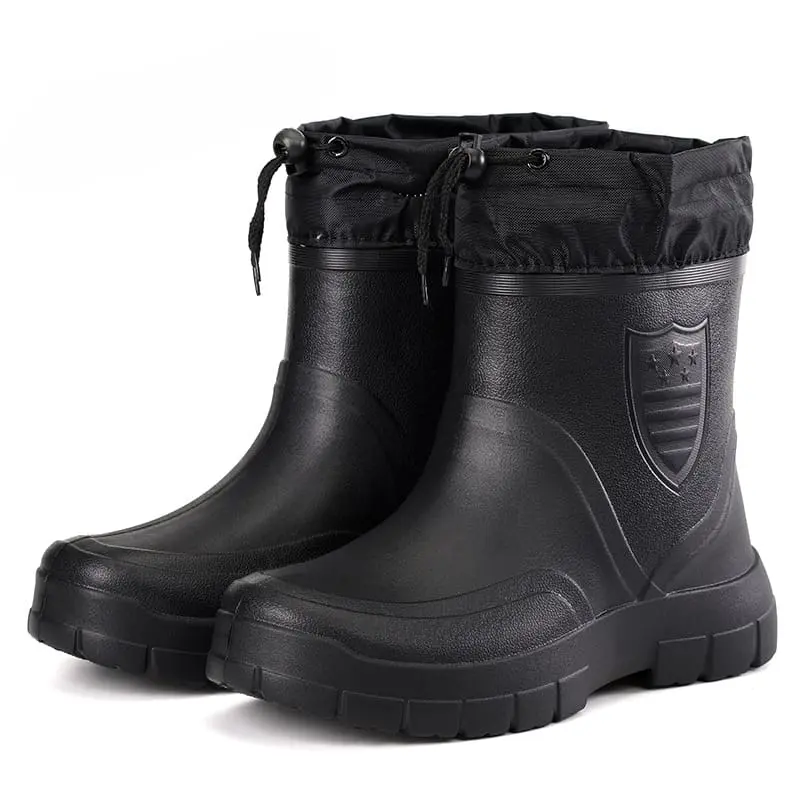 2024 Versatile Men’s Rain Boots Waterproof outdoor lightweight shoe Velvet fashion short boot Casual comfort male water shoes