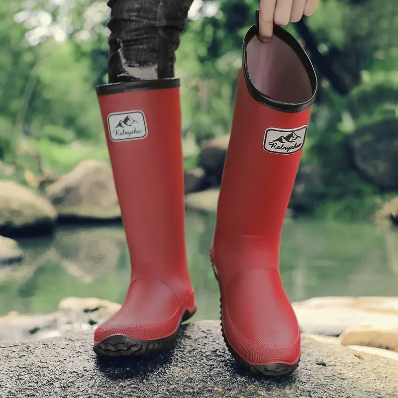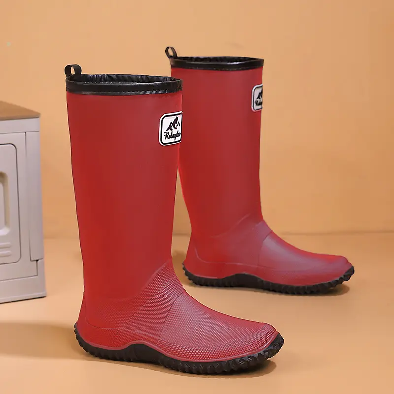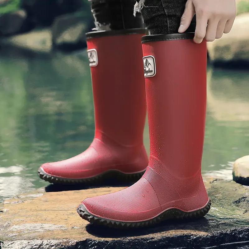 Fashionable Red Long Boots For Women Platform Non-Slip Rain Shoes Women Fishing Boots Outdoor Waterproof Women’s Rubber BootsCNY 177.43-192.43/pair