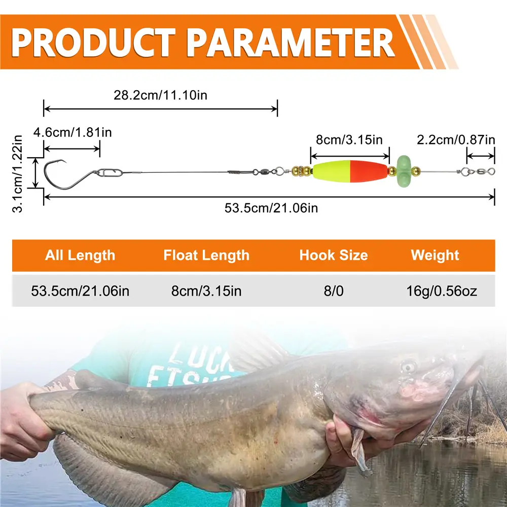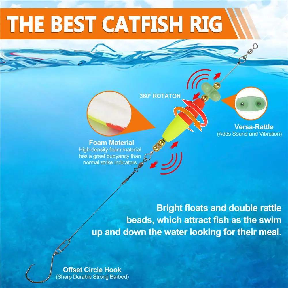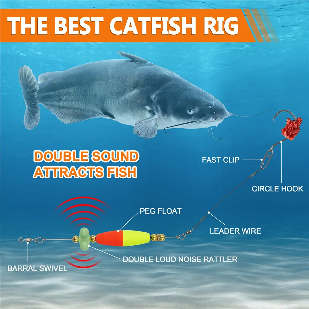 2pcs Catfish hooks with Peg Float Rattle Catfishing Rig Tackle With 8/0 Offset Circle hooks Santee Rig Fishing Equipment