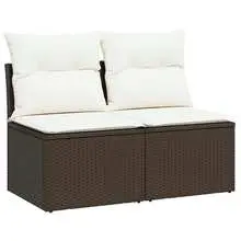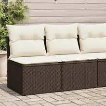 4-Piece Brown Poly Rattan Garden Sofa Set with Cushions – Stylish Acacia Outdoor Furniture