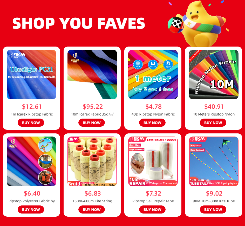 9KM 5m 40D Ripstop Nylon Fabric Waterproof Kite Fabric Lightweight 48g/m² THK 0.9mm for Line Laundry Kite & Bags DIY Material