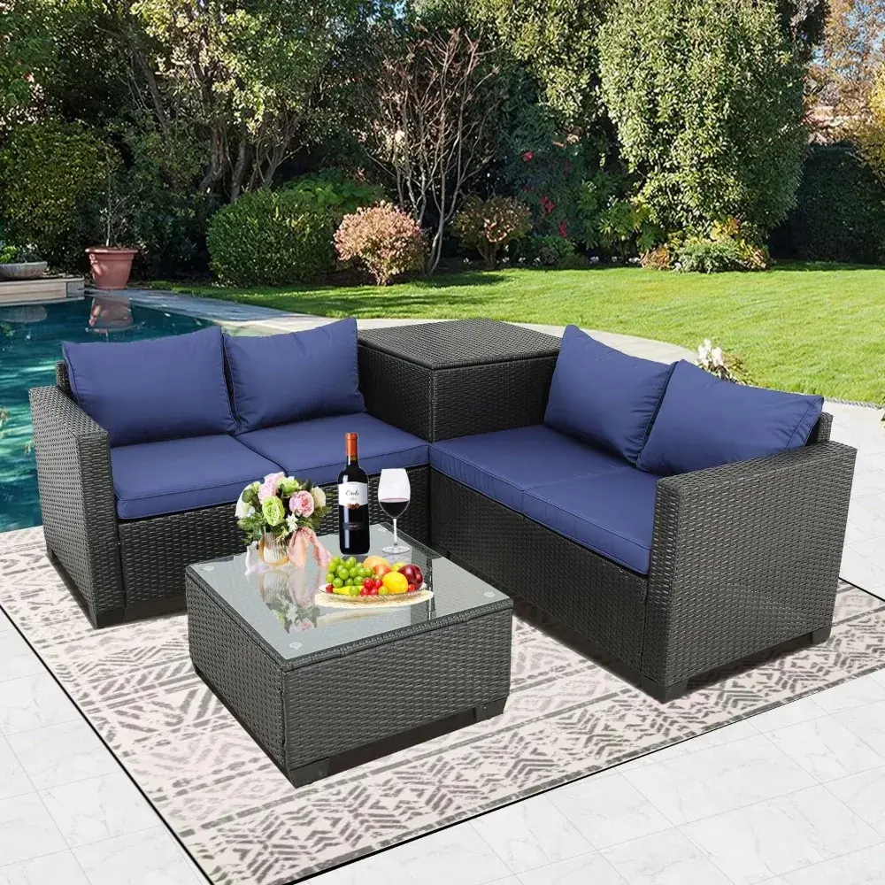 Introducing our premium Outdoor Furniture Set, featuring a stylish and functional four-piece ensemble complete with a spacious storage box.