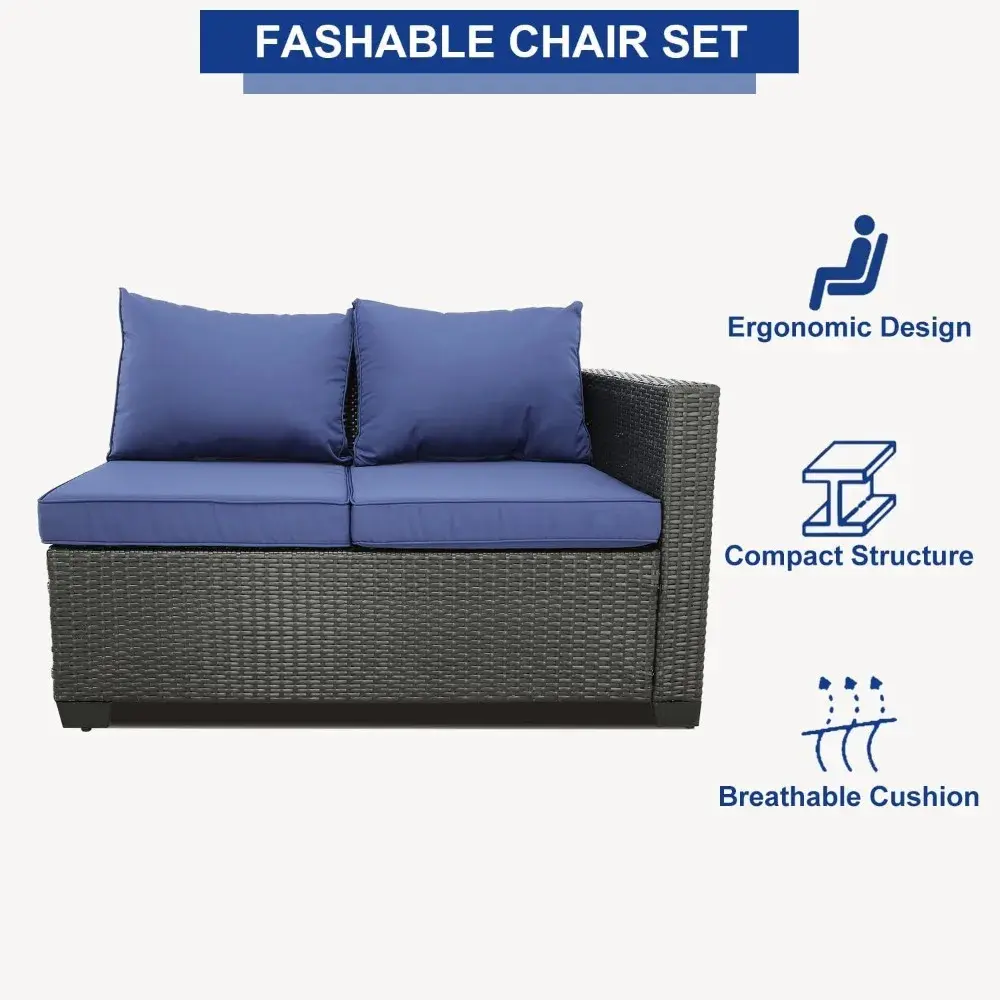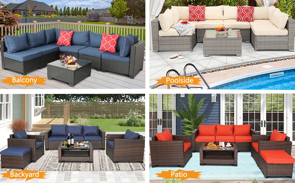 Wicker patio sectional set is equipped with adjustable feet that can be adjusted to different heights according to different locations, suitable for various places.