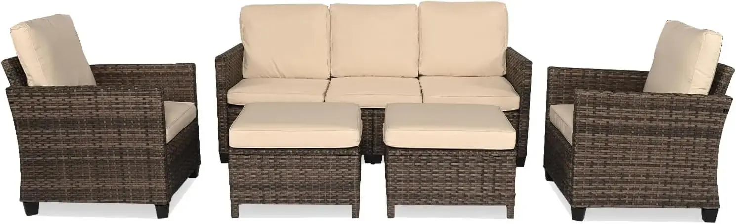 √ 【High Quality Material】 Modern design outdoor furniture made of steel and wicker, this patio set with 1 loveseat, 2 single chair and 1 table can perfectly accommodate your family and friends. Wicker patio furniture crafted with high-quality wicker, surely becomes a handsome décor to your patio, garden, backyard.