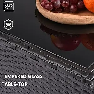 √ 【MATERIAL】 – Made of durable PE wicker and high quality steel frame. Sturdy tempered glass tabletop. Strong steel frame supports sofas stability and balance. Tempered glass can prevent the table from scratches. It can be used for a long time.