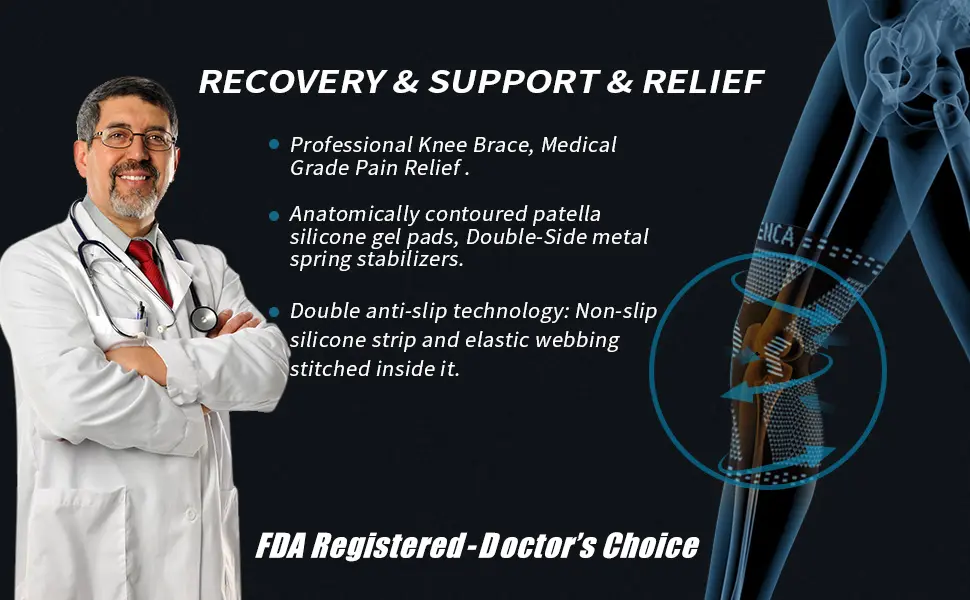 Professional Knee Brace, Medical Grade Pain Relief and Injury Recovery.