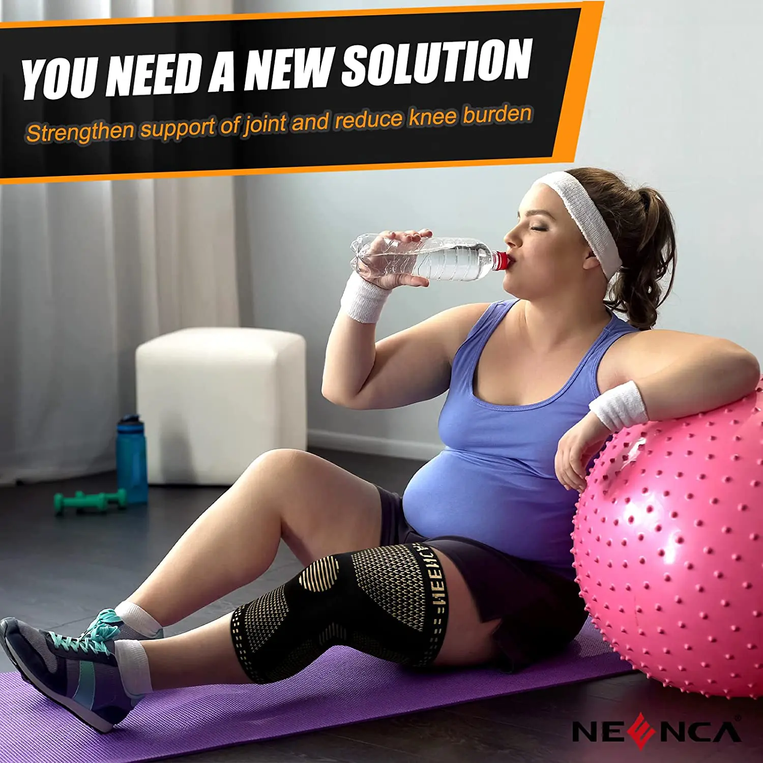 [Attention: Most of Cheap Copper Knee Sleeves Are Fraudulent Tricks.] NEENCA Professional Plus Size Copper Knee Brace with Copper Ions Infused Fiber Technology: REAL 60% Copper Ions Infused Fiber + 21% Nylon +16% Polyester. Food and Drug Administration(FDA) Registered. 8 Sizes