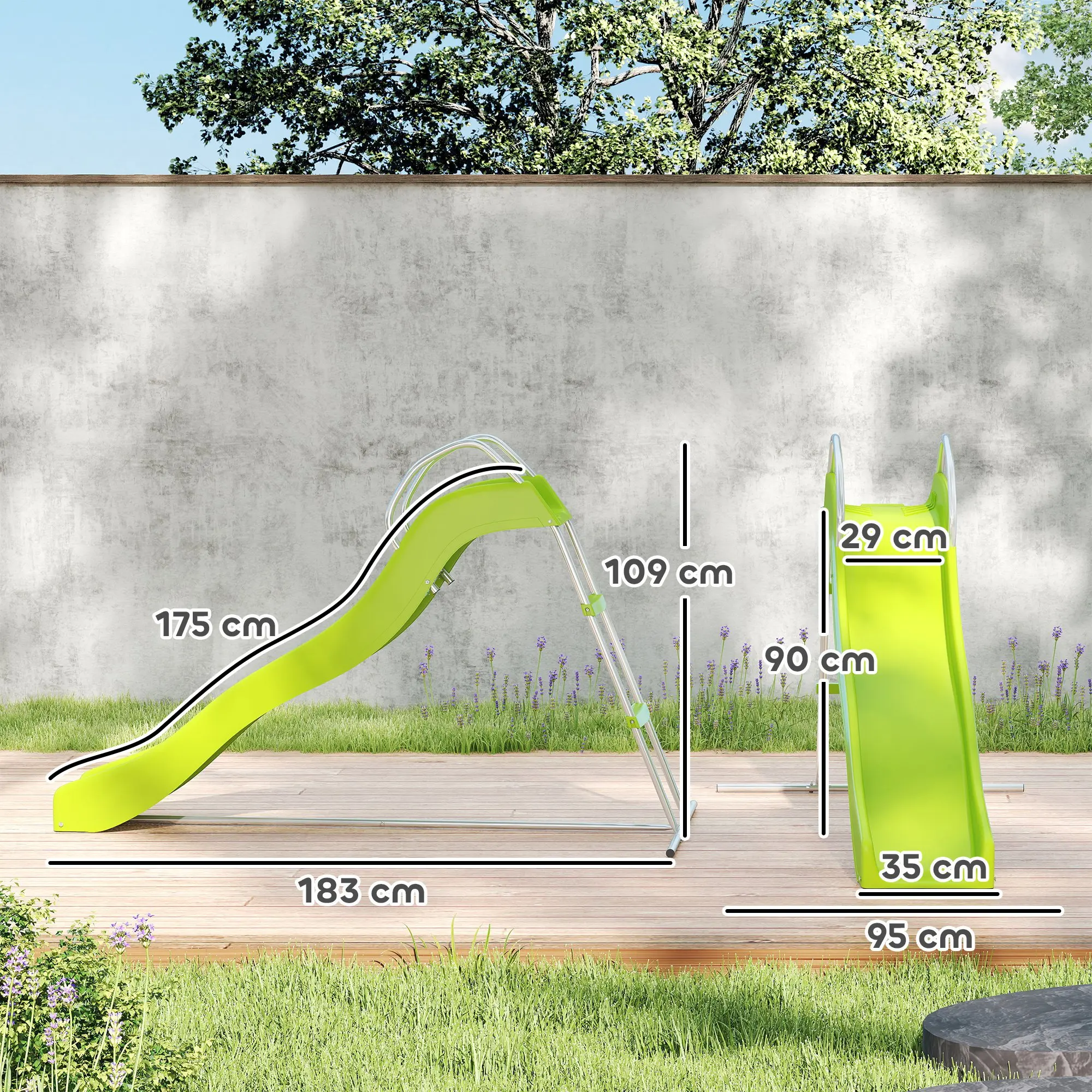 AIYAPLAY Freestanding Garden Wavy Slide for Kids with Climbing Ladder, Green
