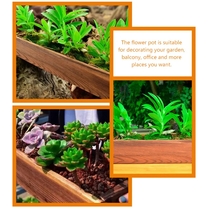 This item is a flower pot which uses wood materials, sturdy and durable. With the good workmanship, the appearance is simple. After planting some plants in it, it will be a beautiful view in your home or office, bringing you better visual enjoyment.