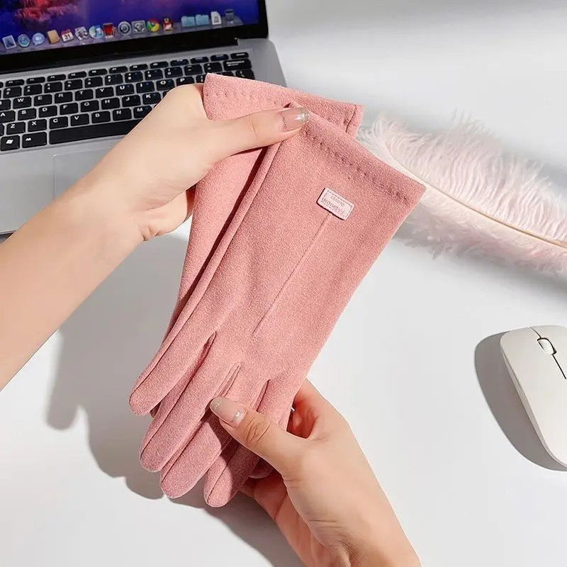 Women’s Winter Plus Velvet Thicken Warm Touch Screen Gloves Elegant Pearl Suede Windproof Full Finger Cycling Driving Gloves K43CNY 32.53/pair