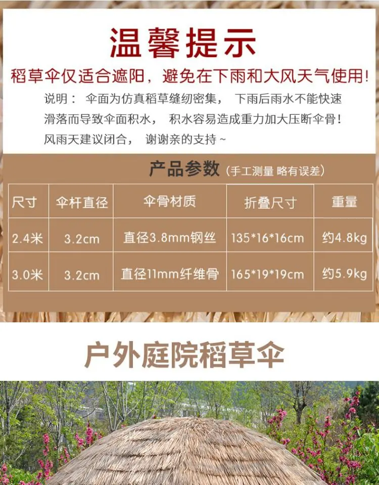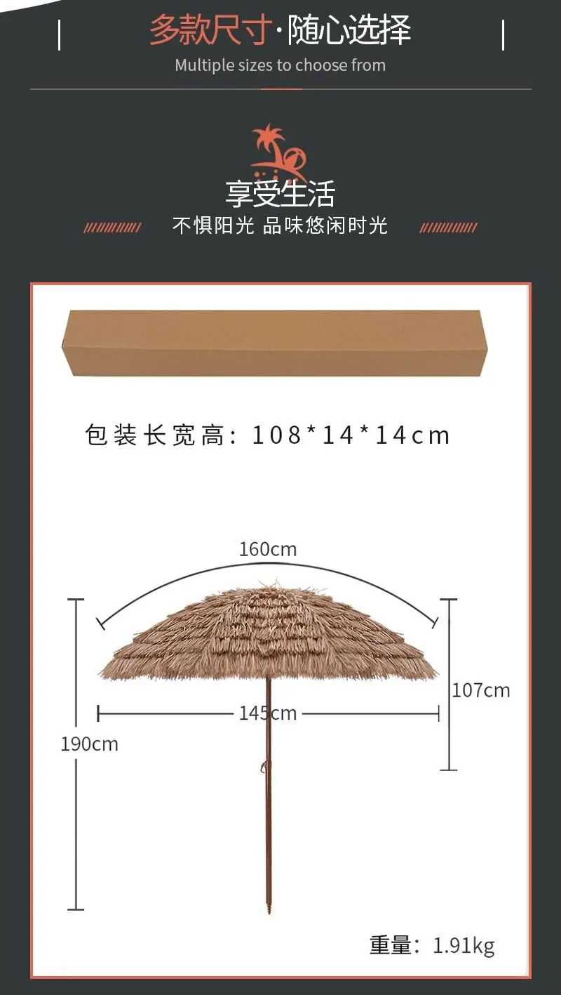 Beach Straw Umbrella Large Outdoor Sunshade Folding Sun Leisure Thatch Scenic Area Pastoral