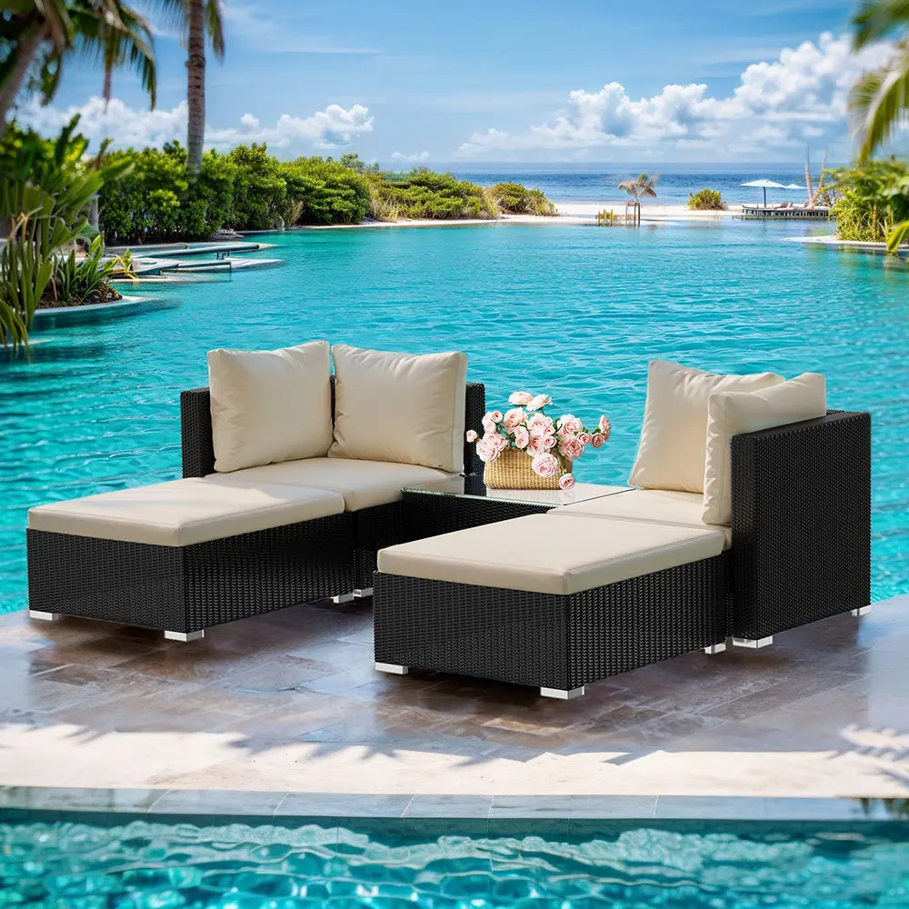 –Sturdy & Reliable Construction: Supported by galvanized rectangular pipes, this 5-piece set ensures strength and stability, making it ideal for gardens, patios, poolside, and more.