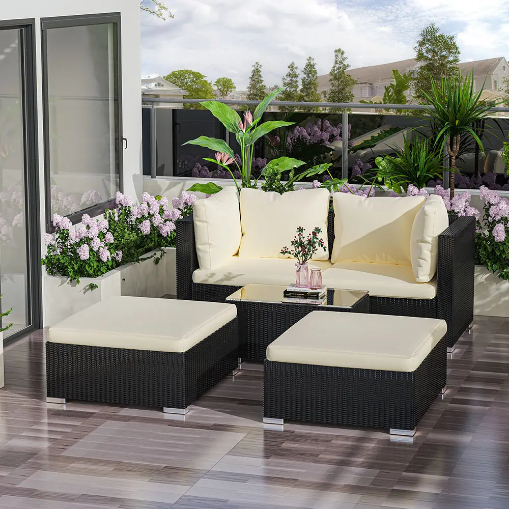 bigzzia Garden Furniture Patio Rattan Dining Table Wicker Weave Corner Sofa Seat Glass Coffee Table Set For Home Lawn Backyard