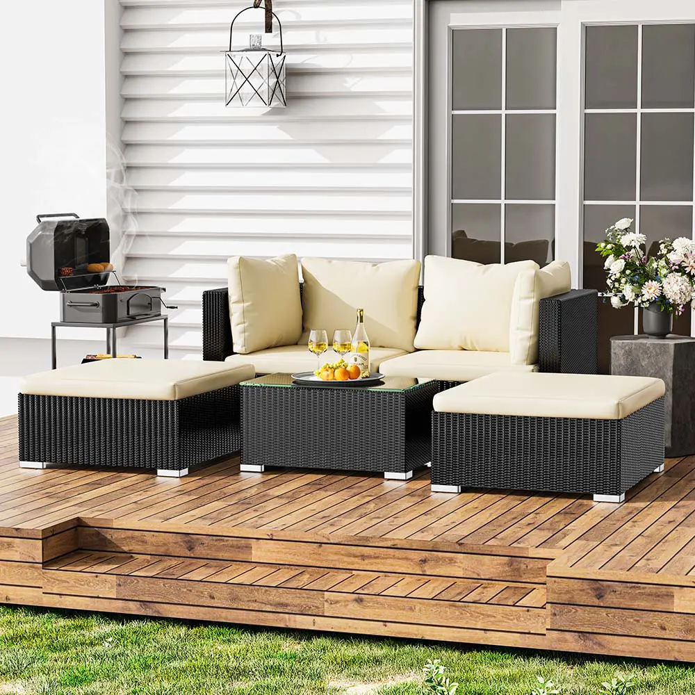 –Well-Crafted Rattan Surface: Constructed with black PE rattan, the wicker exudes an elegant appeal while resisting fading for enduring outdoor use.