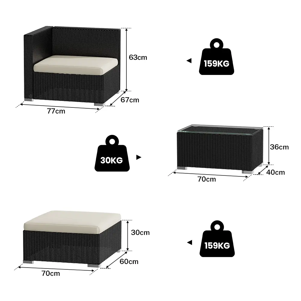 –Corner Sofa: 77 x 67 x 63 cm (Weight Capacity: 159kg)
