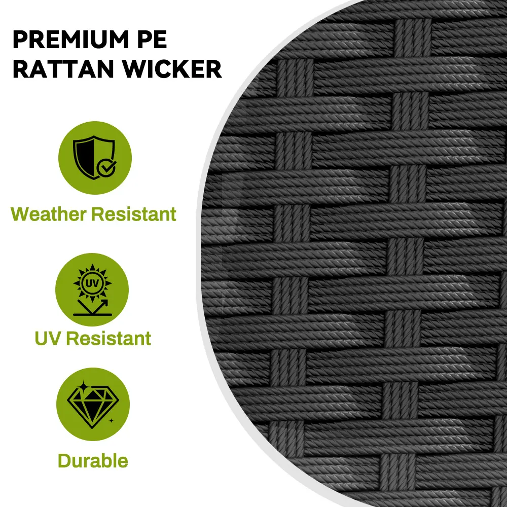 –Well-Crafted Rattan Surface: Constructed with black PE rattan, the wicker exudes an elegant appeal while resisting fading for enduring outdoor use.
