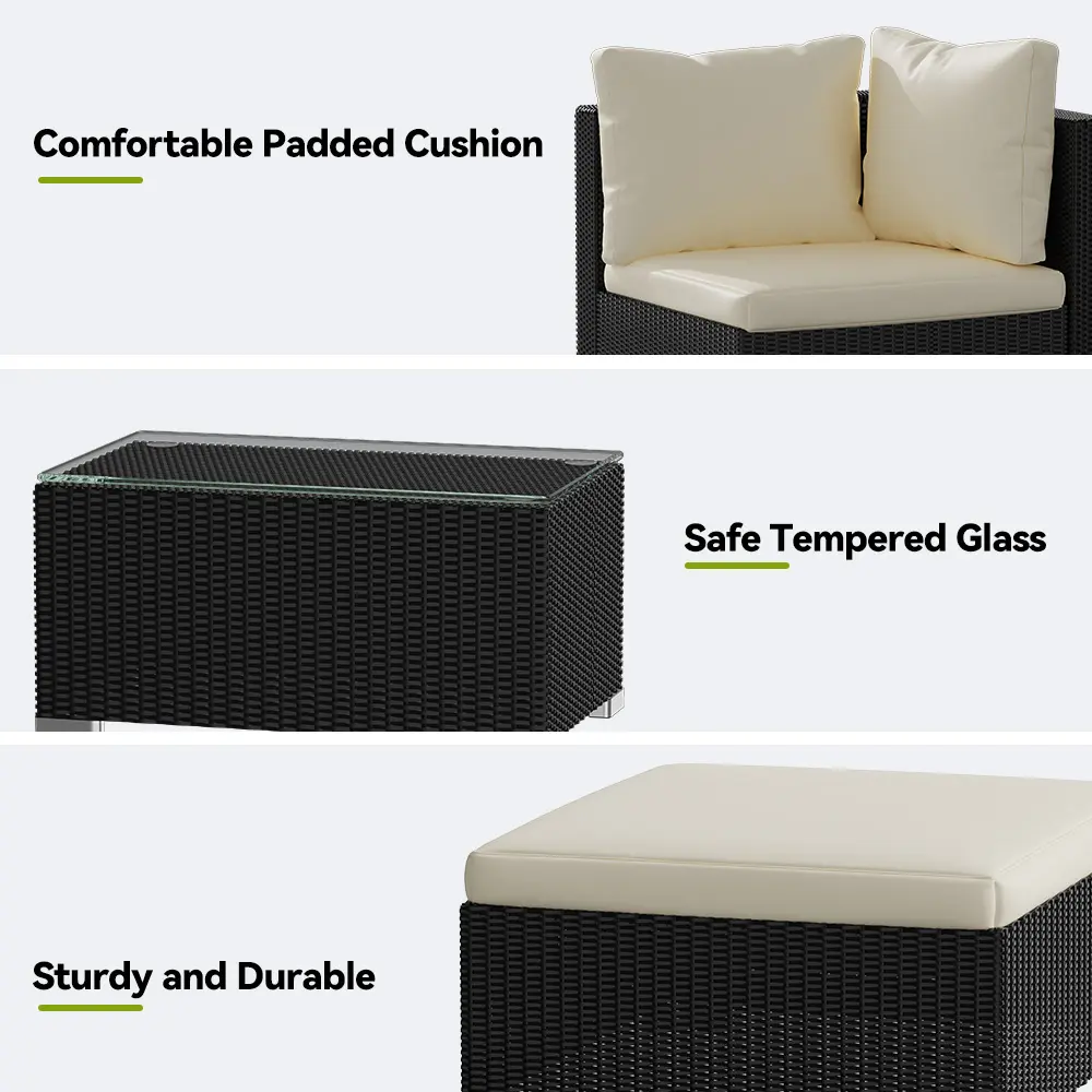 –Soft & Cozy Cushions: Each seat and ottoman features 6cm-thick, high-density cushions that offer exceptional comfort. The corner seat backrest comes with pillow for added support.
