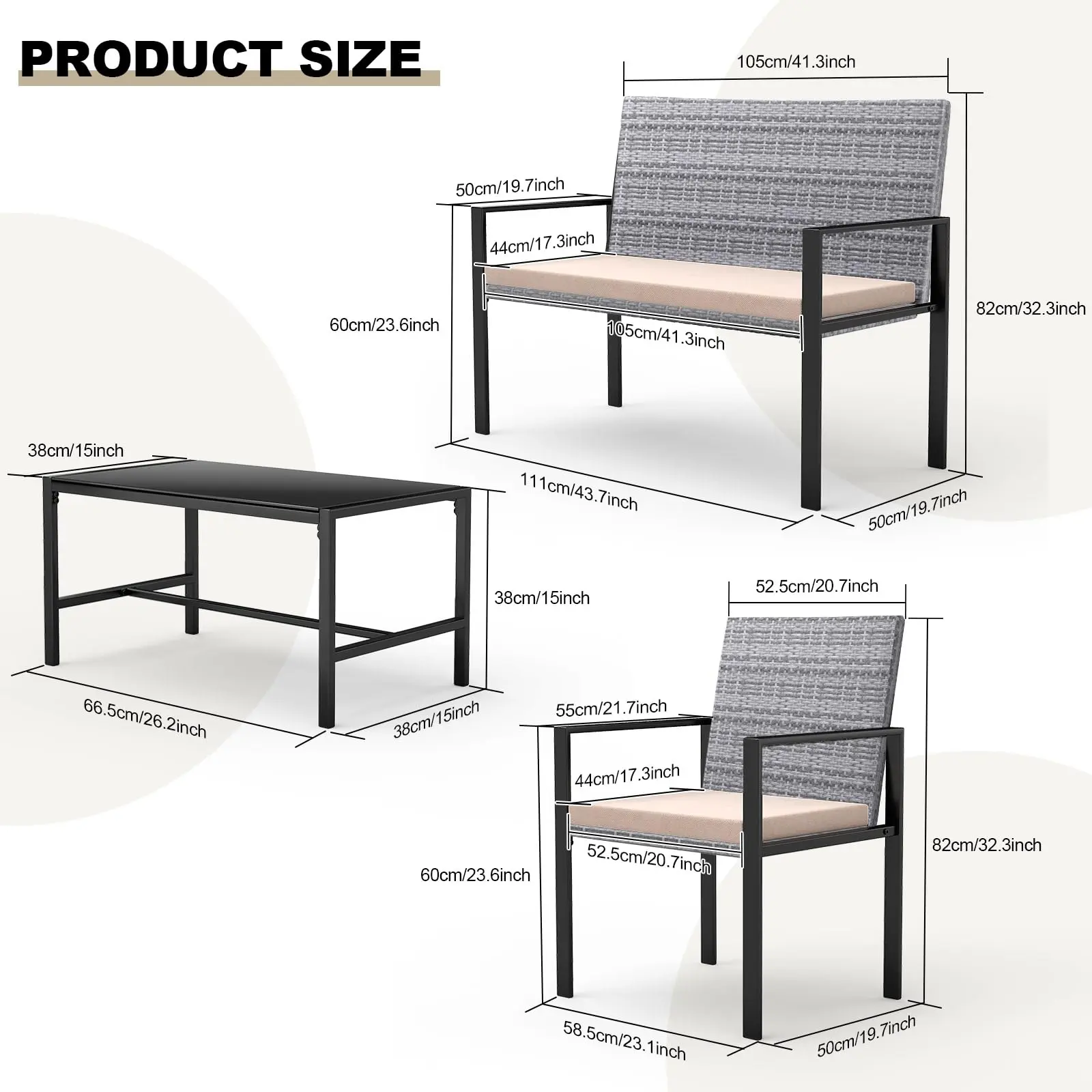 –Easy to Clean:The table surface of this patio furniture set, covered with a layer of high quality tempered glass, can hold a variety of food and drinks or, if you are using it indoors, decorative items.The fabric on the surface of the cushion is made of a waterproof material, so if you accidentally pour a drink on the cushion, you can quickly wipe it away.