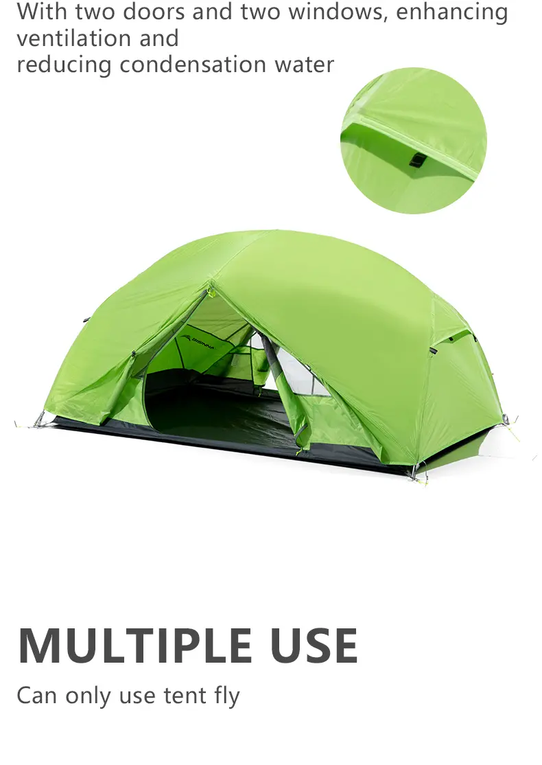 BISINNA 2 Person Ultralight Camping Tent 20D 380T Nylon Double Layer Waterproof Backpacking Tent for Hiking Travel with free mat