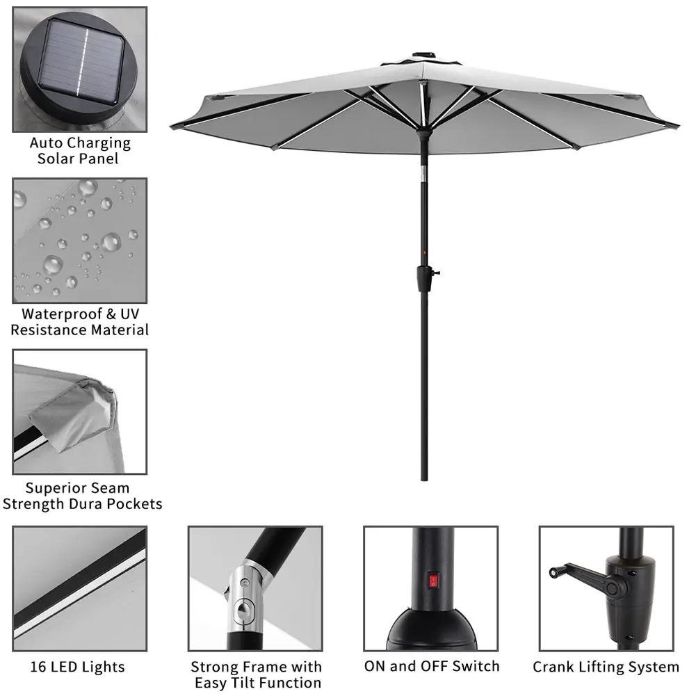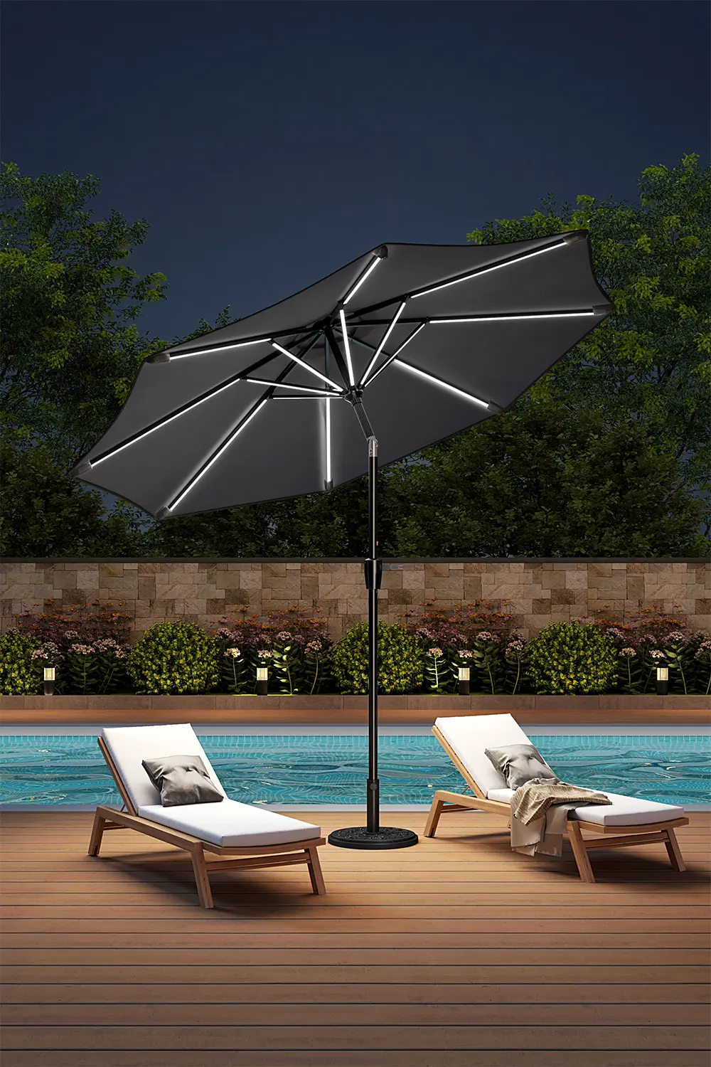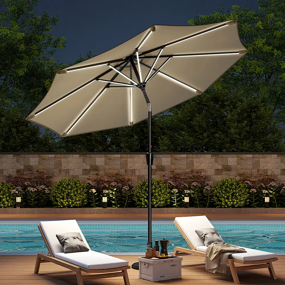 BreeinsLarge Solar Powered LED Patio Umbrella for Outdoor Garden Patio