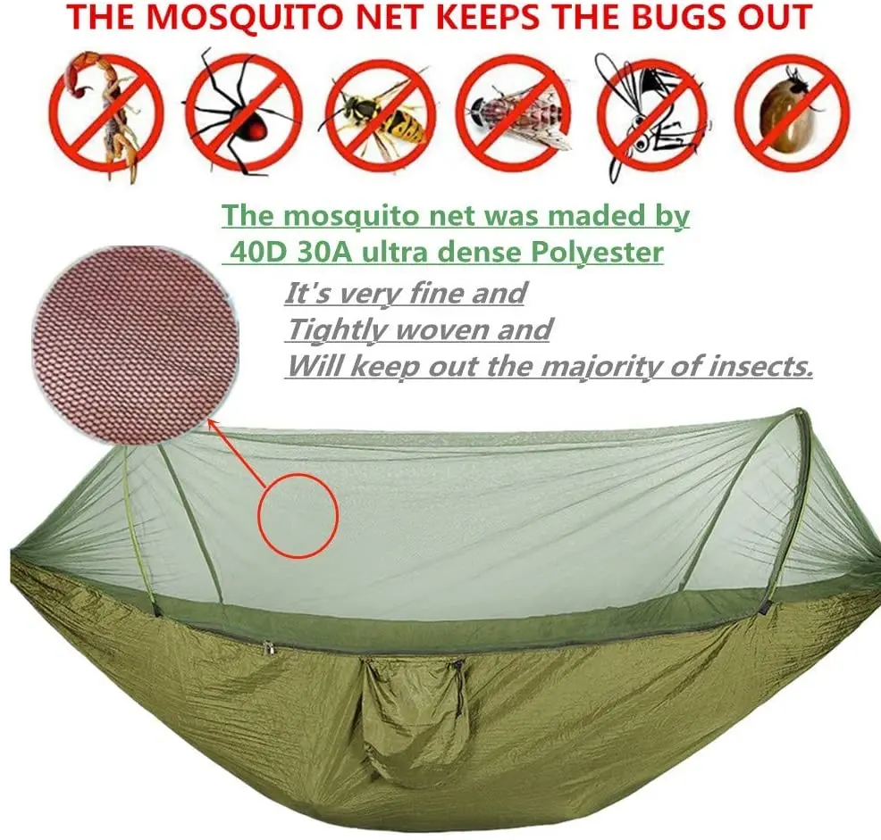 Camping Hammock with Mosquito Net Pop-Up Light Portable Outdoor Parachute Hammocks Swing Sleeping Hammock Camping Stuff