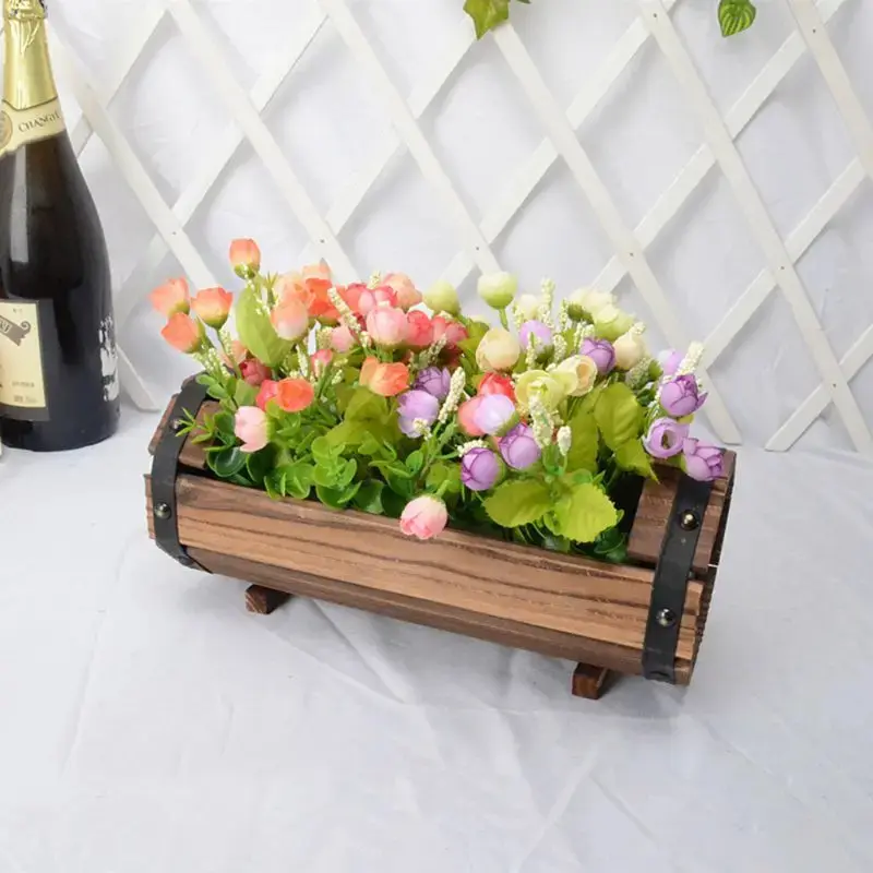 Carbonized Wooden Flower Pot Succulent Plant Potted Planter Outdoor Garden Decor Ornaments