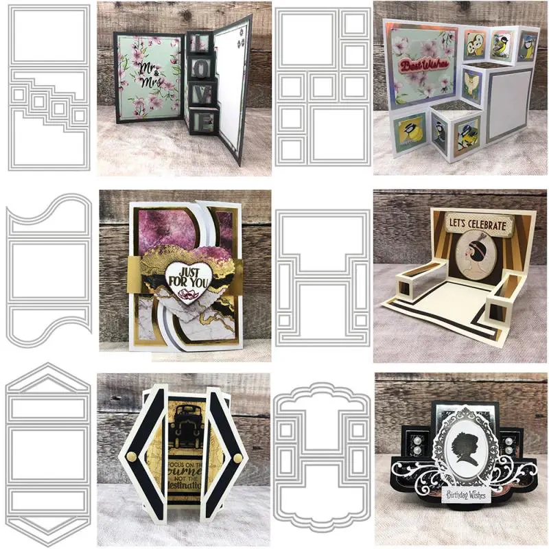 Center/Scalloped/Center Stepper Easel Card Metal Cutting Dies Series Curvy Shutter Card