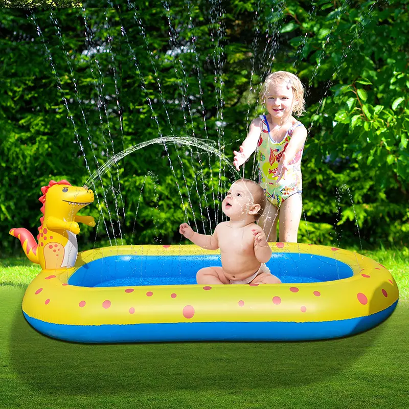 Children Swimming Pool Inflatable Spray Pool Foldable Outdoor Dinosaur Sprinkler Game Pad Kids Water Swimming Pool Baby Bathtub
