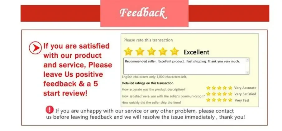 If you are satisfied with our product and service , please leave us 5 stars feedback.