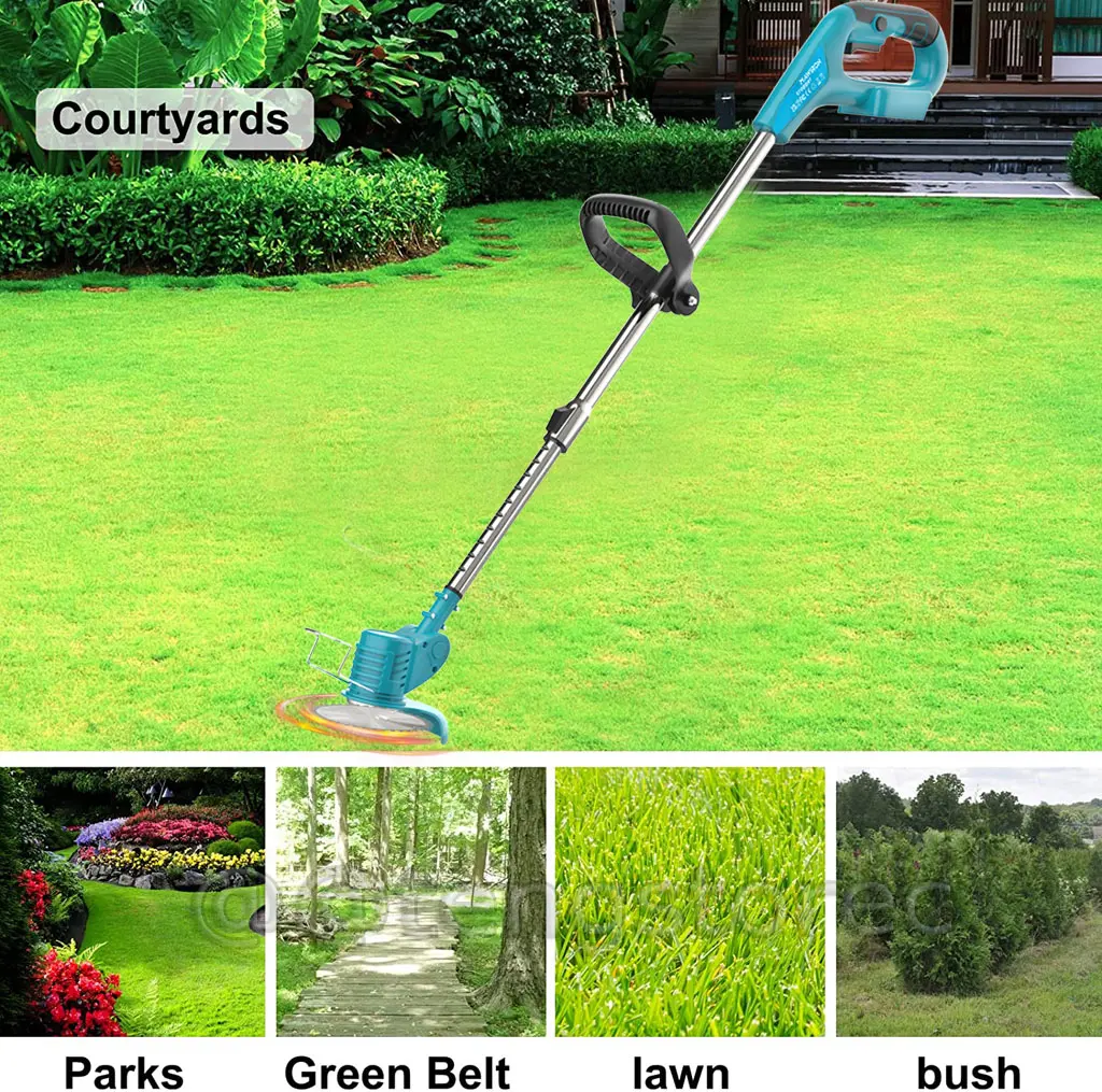 【2 Pack Battery】Electric lawnmower includes 2pcs 3000mAh rechargeable high-capacity lithium battery. Two high-quality battery can make the electric edge trimmer with battery and charger work between 40-60mins(actual time depends on practical grass kind).