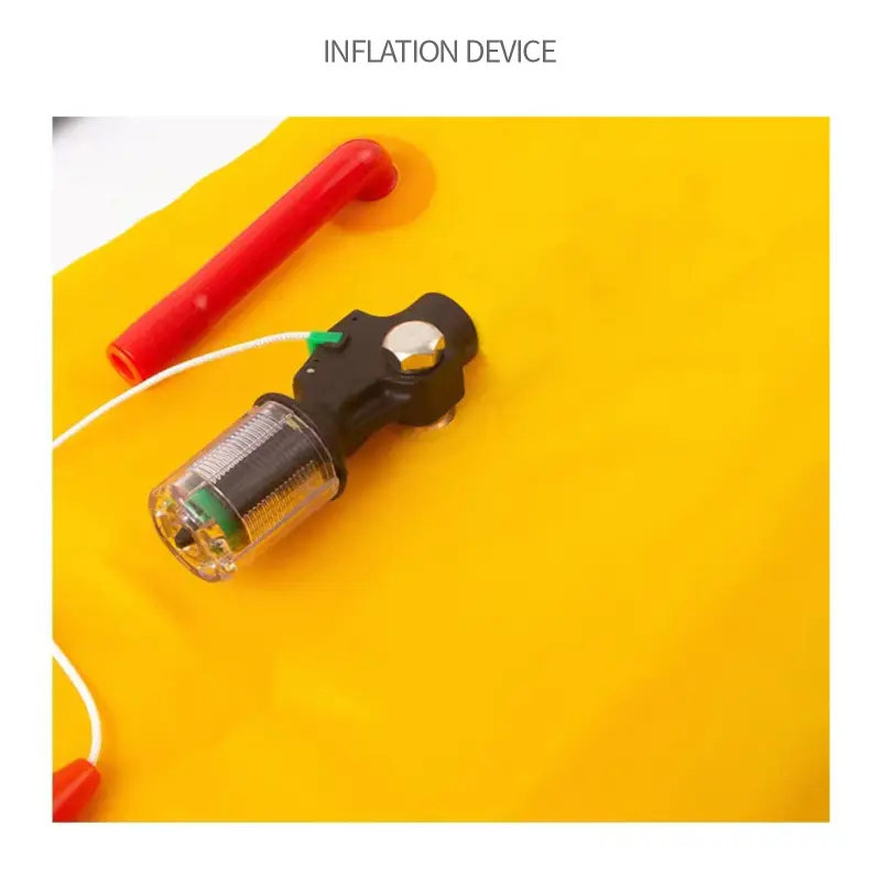 3. Automatically inflates (less than 3-5 seconds) upon immersion in water, or when the wearer pulls the inflation handle.