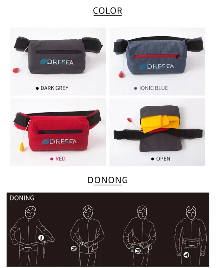 Automatic Inflatable Life Jacket Waist Pouch Features: