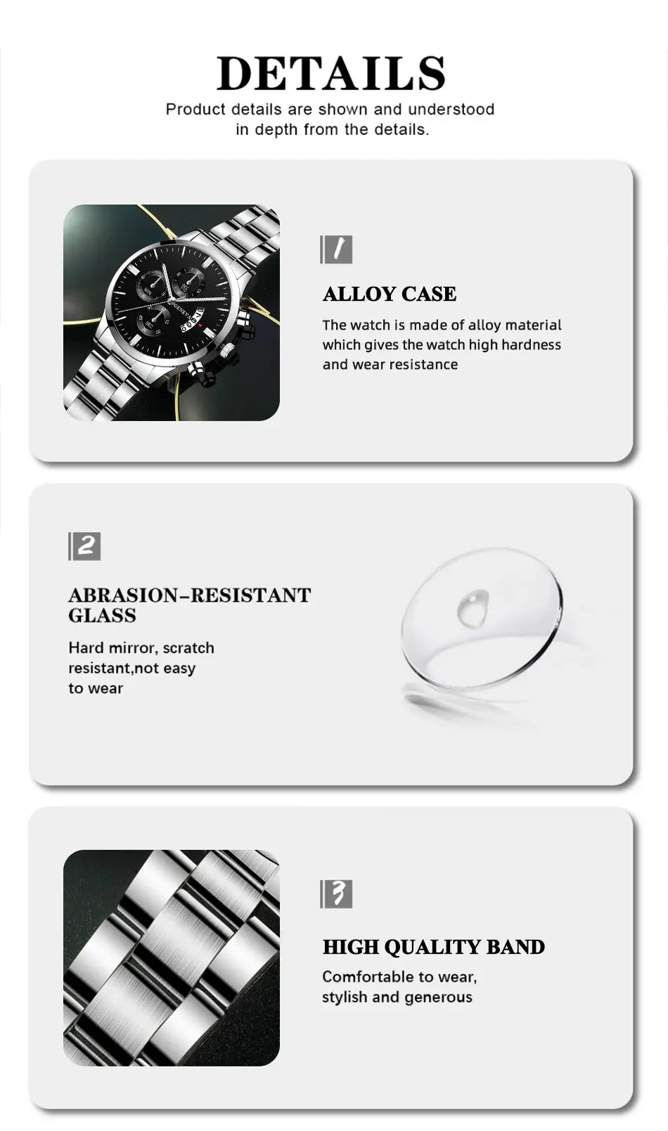 • Stainless Steel Material :The watch is made of high-quality stainless steel, ensuring durability and longevity.