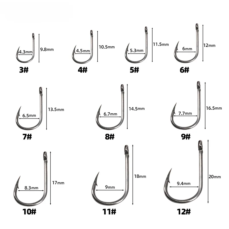 With 10 different sizes(3-12#) to choose from, this set is perfect for use in a variety of fishing situations, and each hook is carefully sharpened to ensure maximum effectiveness.