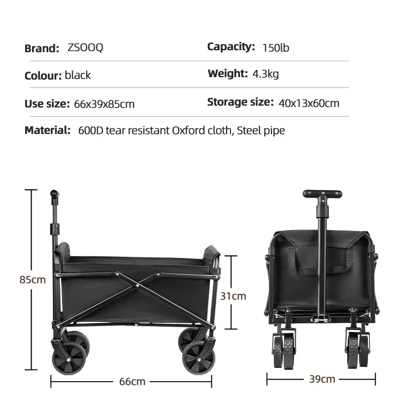 Foldable Portable Picnic Outdoor Camping Cart Heavy Duty Folding Utility Cart Shopping Beach Collapsible Folding Utility Cart