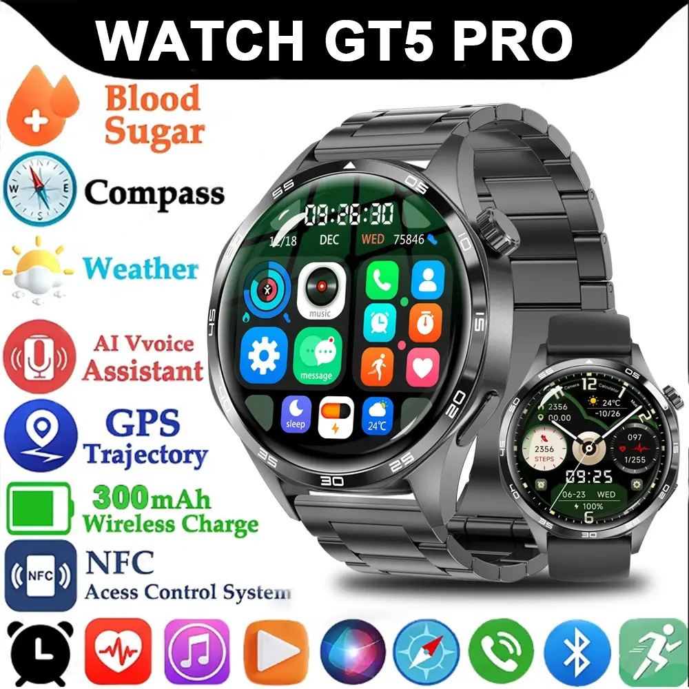 For HUAWEI GT5 Pro GPS NFC Smart Watch Men 360*360 AMOLED Screen Heart rate Bluetooth Call IP67 Waterproof Man Smartwatch 2024