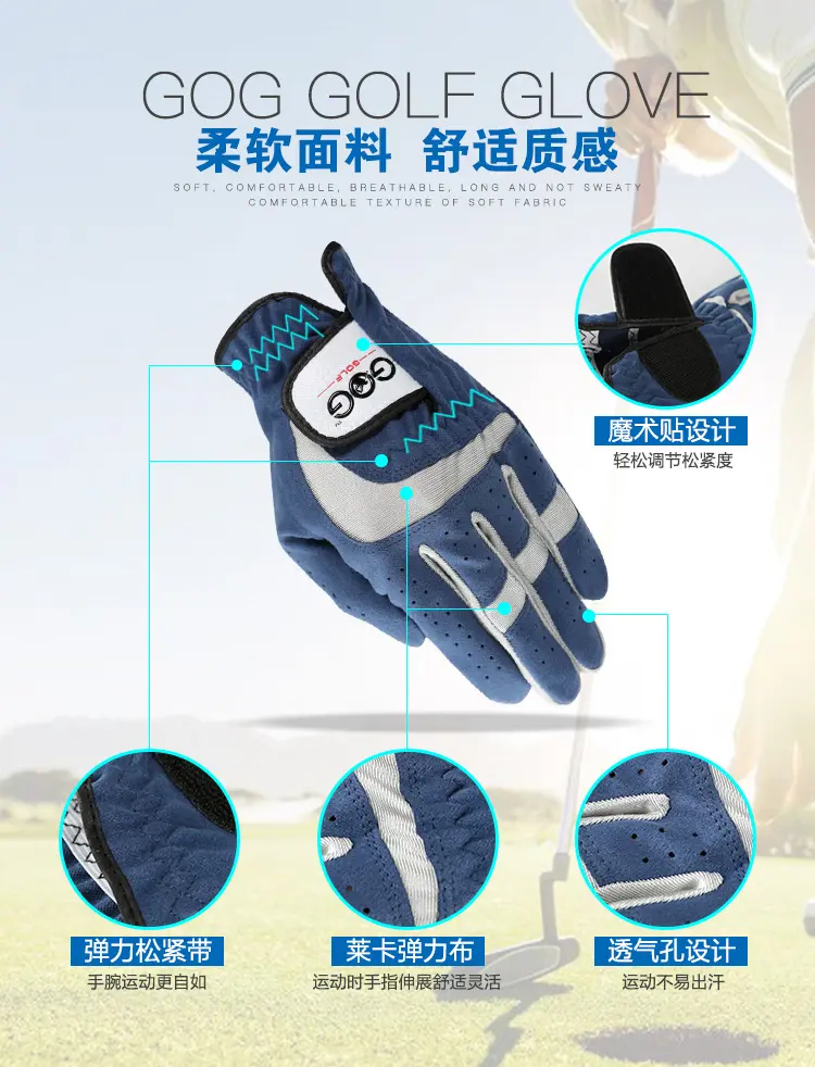 Golf Glove For Men 1pc Blue Sport Fabric Breathable Left Right Hand New Brand Dropship Magic Tape baseball Tennis Glove
