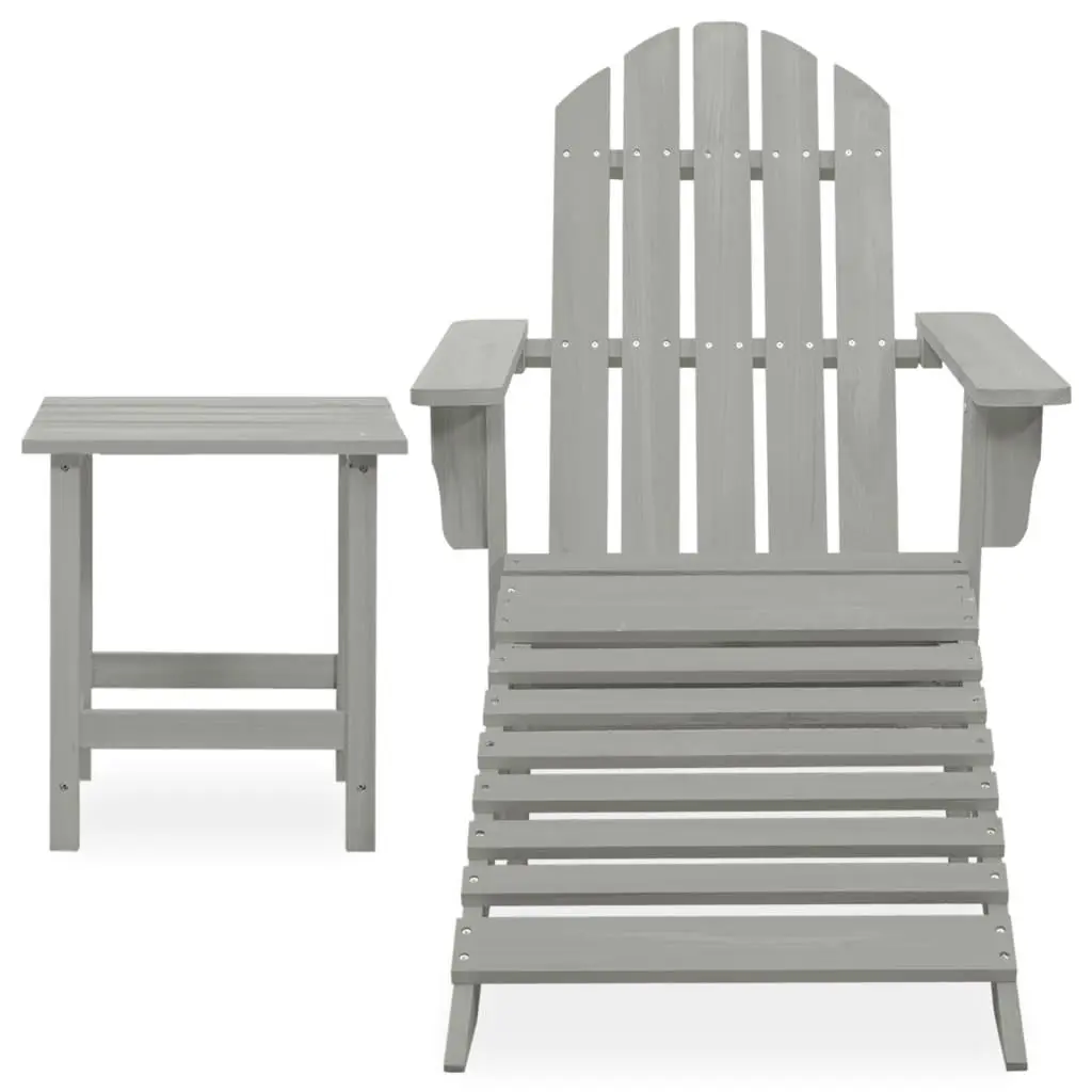 Grey Solid Fir Wood Adirondack Chair Set with Ottoman & Table – Perfect Garden Furniture