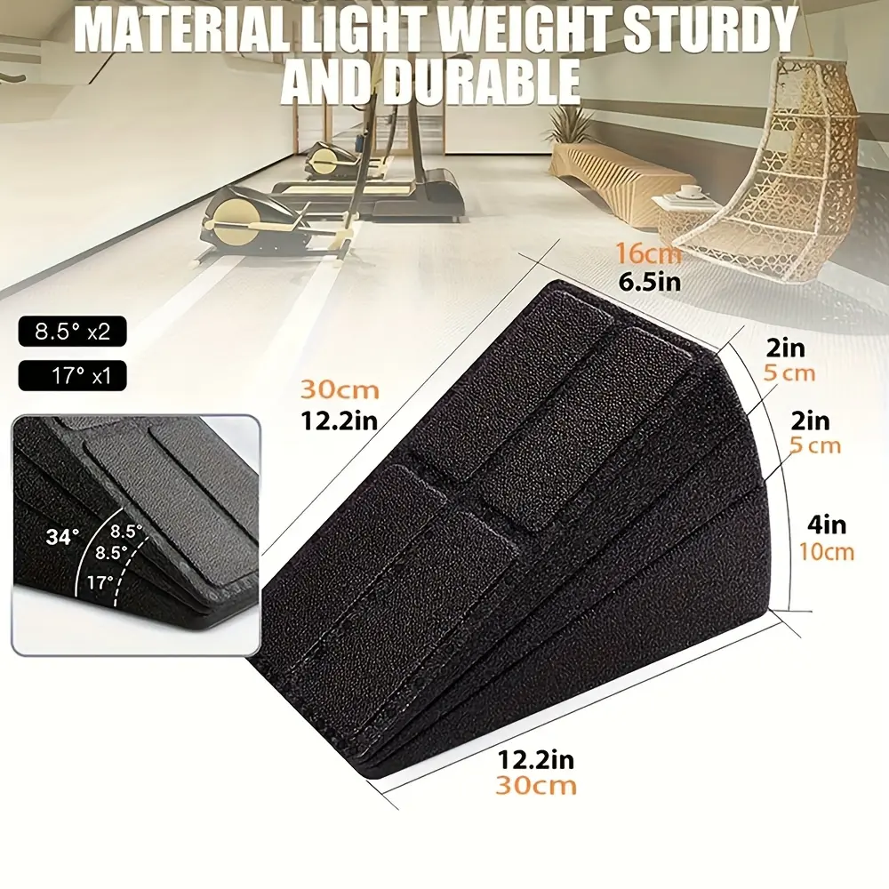 1. Unique design – the squatting platform consists of three tilt plates, two 8.5 ° tilt foam tilt plates and one 17 ° tilt foam tilt plate. The stacking design can form a pair of 8.5 ° squat tilt plates or a pair of 17 ° squat tilt plates.