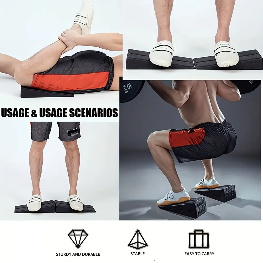 2. High quality and sturdy materials – Yoga wedge shaped elastic diagonal board for calf stretching, made of high-quality EPP environmentally friendly materials, non-toxic, odorless, and waterproof. The foam wedge can withstand up to 400 pounds- Designed specifically for heavy lifting and strong pressure!