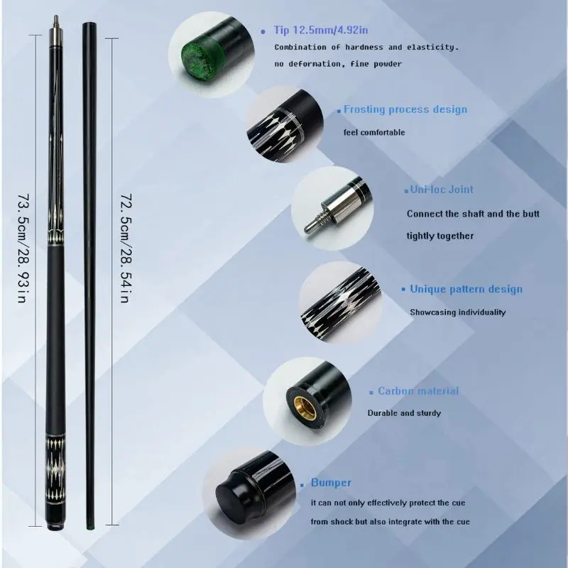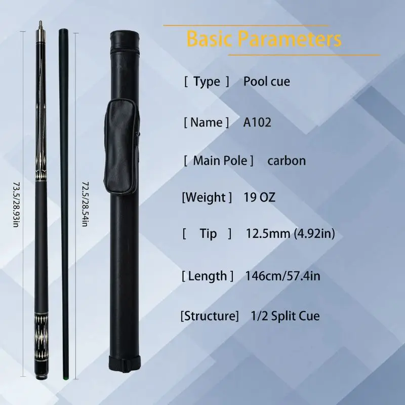 High Performance Carbon Pool Cue 1/2 Split Design Durable Flexible High Hardness Resistance Includes Glove Cue Case Pool StickCNY 506.73-561.95/piece