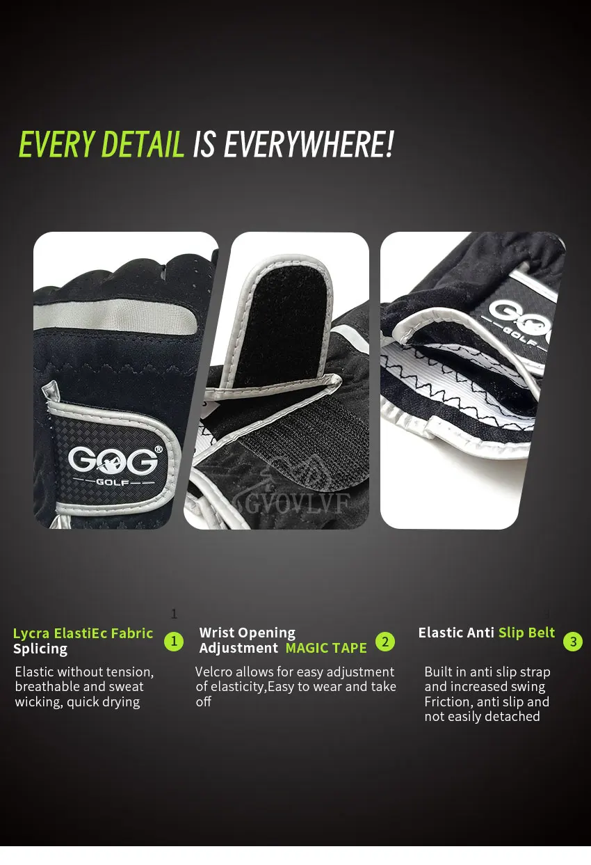 Specifications: Material: Fabric Applicable People: Men Origin: Guangdong, China Size Range: Left hand (22#(S) to 27#(XXL)); Right hand (22#(S) to 27#(XXL)) Design: Breathable, non-slip, wrist support Performance: Enhanced grip and comfort Features: |Footjoy Men Weathersof Golf Glove|Golf Glove With Wrist Support|Buy Bulk Golf Gloves| **Optimized Comfort and Performance** The GOG golf gloves for men are meticulously crafted from a premium fabric that offers a soft touch and breathability, ensuring your hands stay cool and dry during intense rounds. Designed with a non-slip grip, these gloves provide a secure hold on your golf ball, reducing the risk of slips and mishits. The wrist support feature adds an extra layer of stability, allowing you to swing with confidence and control. Whether you're a seasoned golfer or a beginner, these gloves are tailored to enhance your game with every swing. **Versatile Fit for All Hand Types** Understanding the importance of a perfect fit, the GOG golf gloves come in a comprehensive size range, catering to both left and right-handed golfers. With sizes ranging from 22#(S) to 27#(XXL), you can find the perfect fit for your hand, ensuring a snug and comfortable fit that doesn't restrict your movement. Whether you're a right-handed golfer wearing a glove on your left hand or a left-handed golfer looking for a glove on your right hand, these gloves are designed to fit both hands seamlessly. **Durable and Long-Lasting** Crafted with durability in mind, these golf gloves are built to withstand the rigors of the game. The fabric material is resilient, resisting wear and tear, ensuring that your gloves maintain their shape and performance over time. The GOG golf gloves are not just about comfort and grip; they are also about longevity, making them a smart investment for any golfer. Whether you're playing in the sunny outdoors or in the cooler weather, these gloves are designed to provide consistent performance and support, round after round.