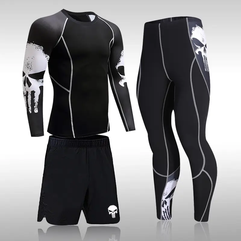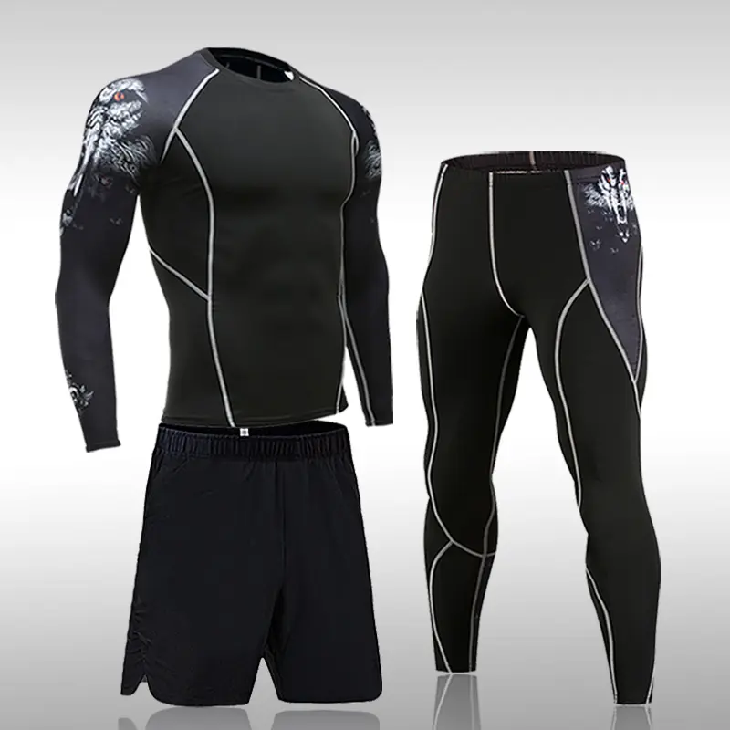 Specifications: Material: Polyester fiber 90%, spandex 10% Closure Type: Pullover Season: Spring, Summer, Fall, Winter Fit: True to size, designed for a snug fit Collar: O-neck Origin: Guangdong, China Features: |Men Winter Running Clothing|What Are Compression Pants Used For|Lingerie Mma| **Optimal Comfort and Performance** The Male Quick Drying Sportswear Compression Clothing is a versatile fitness training kit that caters to the needs of athletes and fitness enthusiasts. Crafted from a premium blend of polyester fiber and spandex, this thermal underwear offers a snug fit that enhances muscle support and blood circulation, promoting recovery and endurance during intense workouts. The pullover design ensures ease of wear, while the O-neck collar provides a comfortable fit without compromising on style. **Versatile and Adaptable** Designed for all seasons, this running set is an essential addition to any athlete's wardrobe. Whether you're hitting the gym in the spring, summer, fall, or winter, the thermal compression pants provide the necessary warmth and breathability to keep you comfortable and focused on your performance. The compression clothing is true to size, ensuring a perfect fit for men of various heights and weights, making it a reliable choice for a wide range of body types. **Tailored for Active Men** This men's running sports suit is not just about style; it's about functionality. The sweat-wicking properties of the fabric keep you dry and odor-free, while the MMA Rashgard design offers additional protection against abrasions and impacts. The men's thermal compression pants are ideal for winter running, providing insulation without the bulk, and the lightweight fabric ensures that you can move freely without restriction. Whether you're a seasoned athlete or a fitness enthusiast, this sportswear is designed to meet the demands of your active lifestyle.