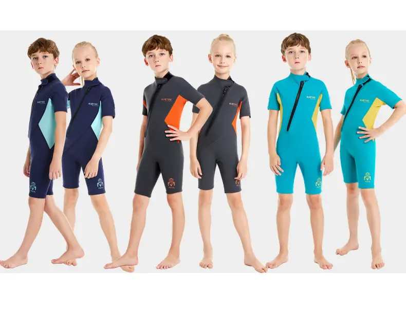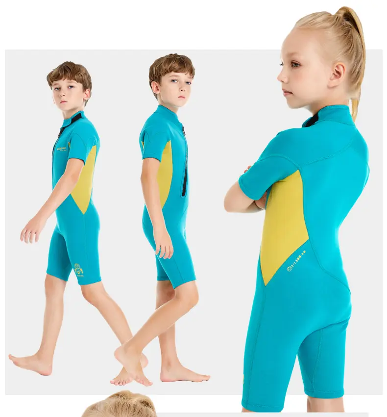The more fit the diving suit is, the less water can touch the skin and the warmer children will be.