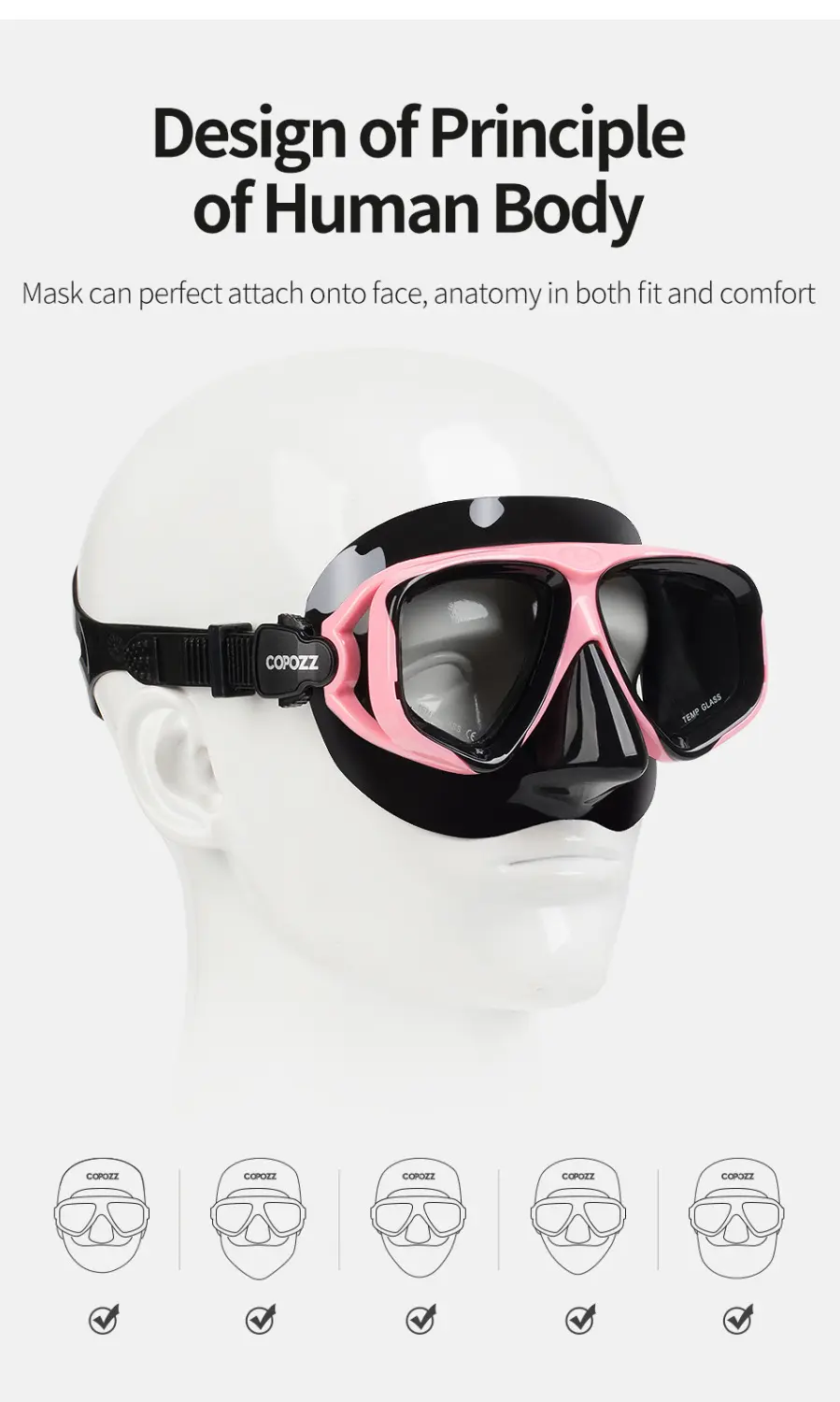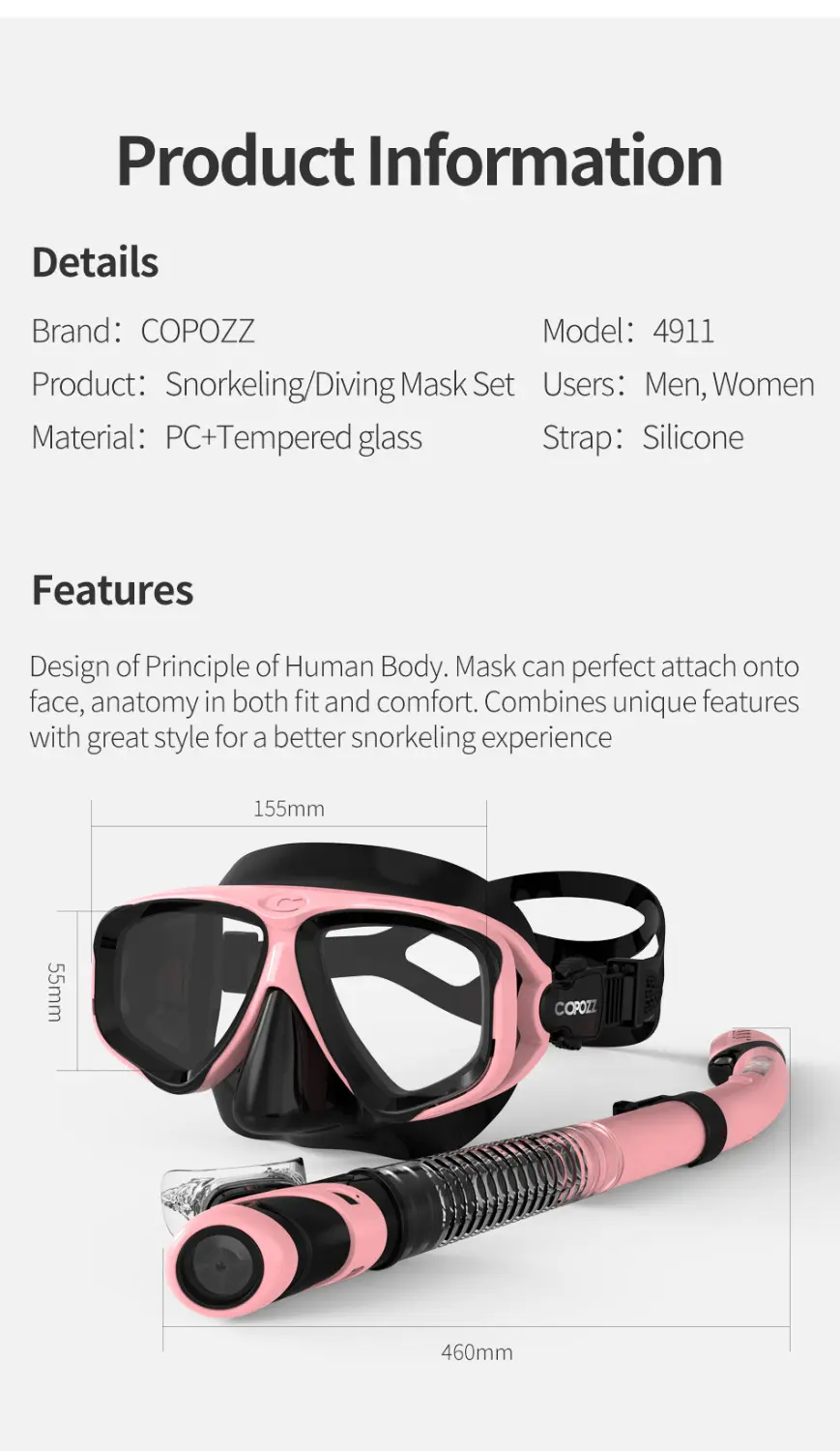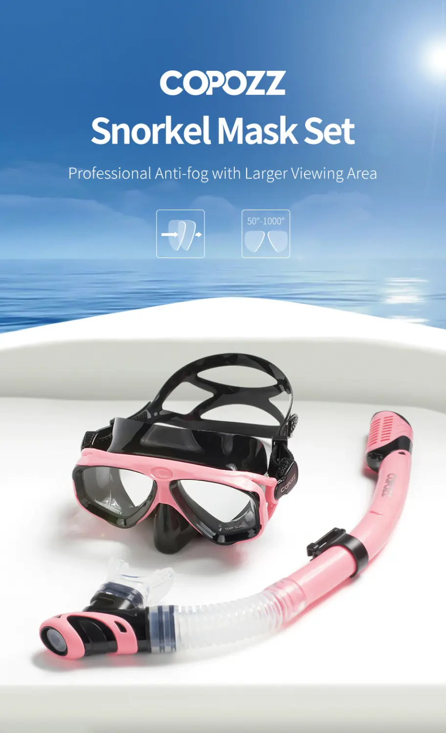 Copozz New Professional Scuba Diving Mask Snorkel Anti-Fog Goggles Glasses Tube Set Men Women Silicone Swimming Pool Equipment